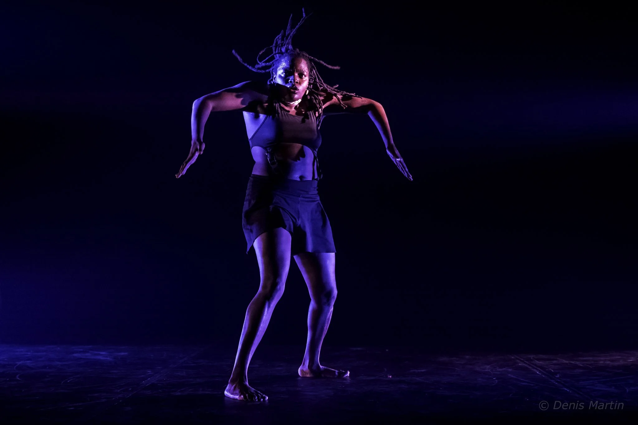 Avant d’entrer en scène, Athéna a demandé à son amie Aïchatou Erna Labarang de faire une première partie. « On a beaucoup dialogué humainement et artistiquement ensemble ces dernières années et on a entamé un projet ensemble qui s’appelle Essence. Ici, on présente chacune notre version de notre Essence en quelque sorte », dit-elle. Pour Athéna, l’œuvre de Aicha, qui se nomme Sens inverse, fonctionnait très bien avec sa propre œuvre. « Elle permet une première ouverture sur le fait de contrer le temps dans lequel on vit, le temps dans lequel on pense qu’on doit vivre, qu’on doit faire. Sa pièce crée un infini alors ça installe bien le propos », dit la chorégraphe.