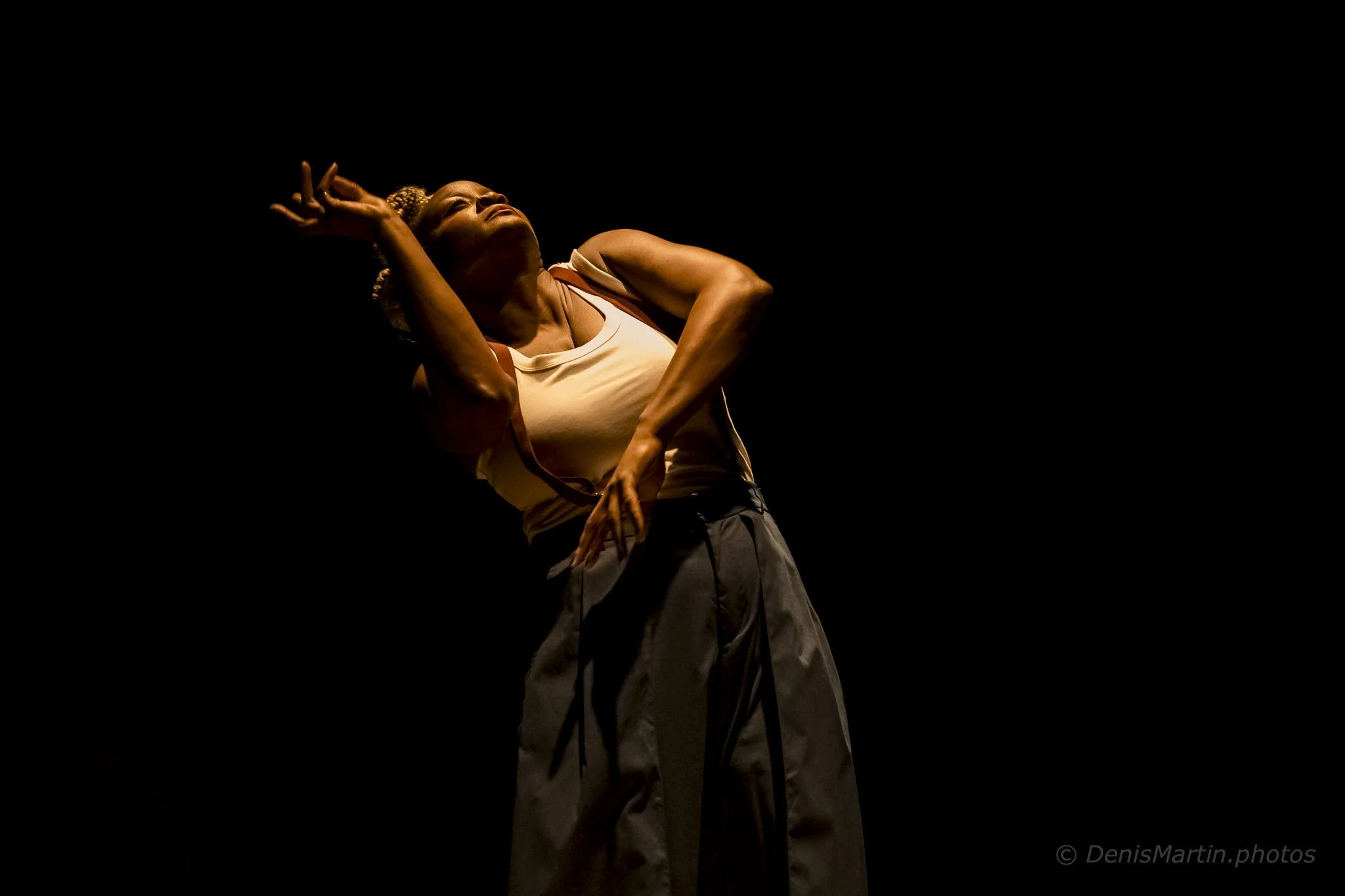 Enfin, le corps de Mithra «Myth» Rabel est en dialogue constant avec les autres éléments et incarne pleinement ces mêmes sujets. Plusieurs influences, des danses d’Afrique au hip-hop, en passant par le jazz et la house, sont visibles dans chacun de ses pas. Entièrement connectée à la musique, l’artiste nous dévoile, tout en sensibilité et avec une présence incontestable, toutes les pratiques qu’elle a embrassées, et qui l’ont aussi traversé. Toutes ces danses de la diaspora africaine qui sont empeignées dans son corps, et qui seront transmises elles aussi à nouveau, par le partage de sa danse, unique, et pourtant universelle.